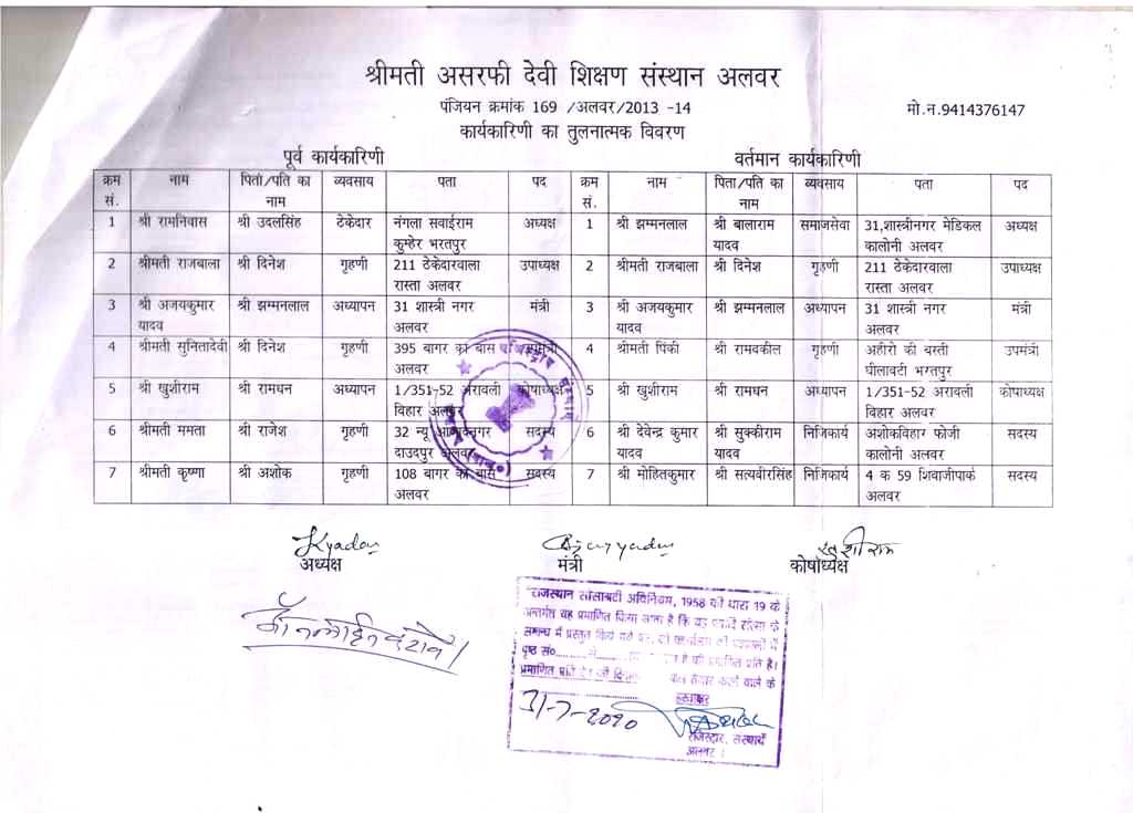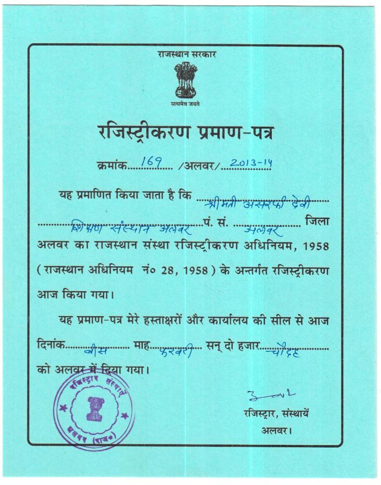 Address of the Institute | OPP. Dy.SP OFFICE SHANTI KUNJ COLONY NEAR SHRI NAGAR BANDEN RAILWAY PHATAK RAJGARH, (ALWAR) |